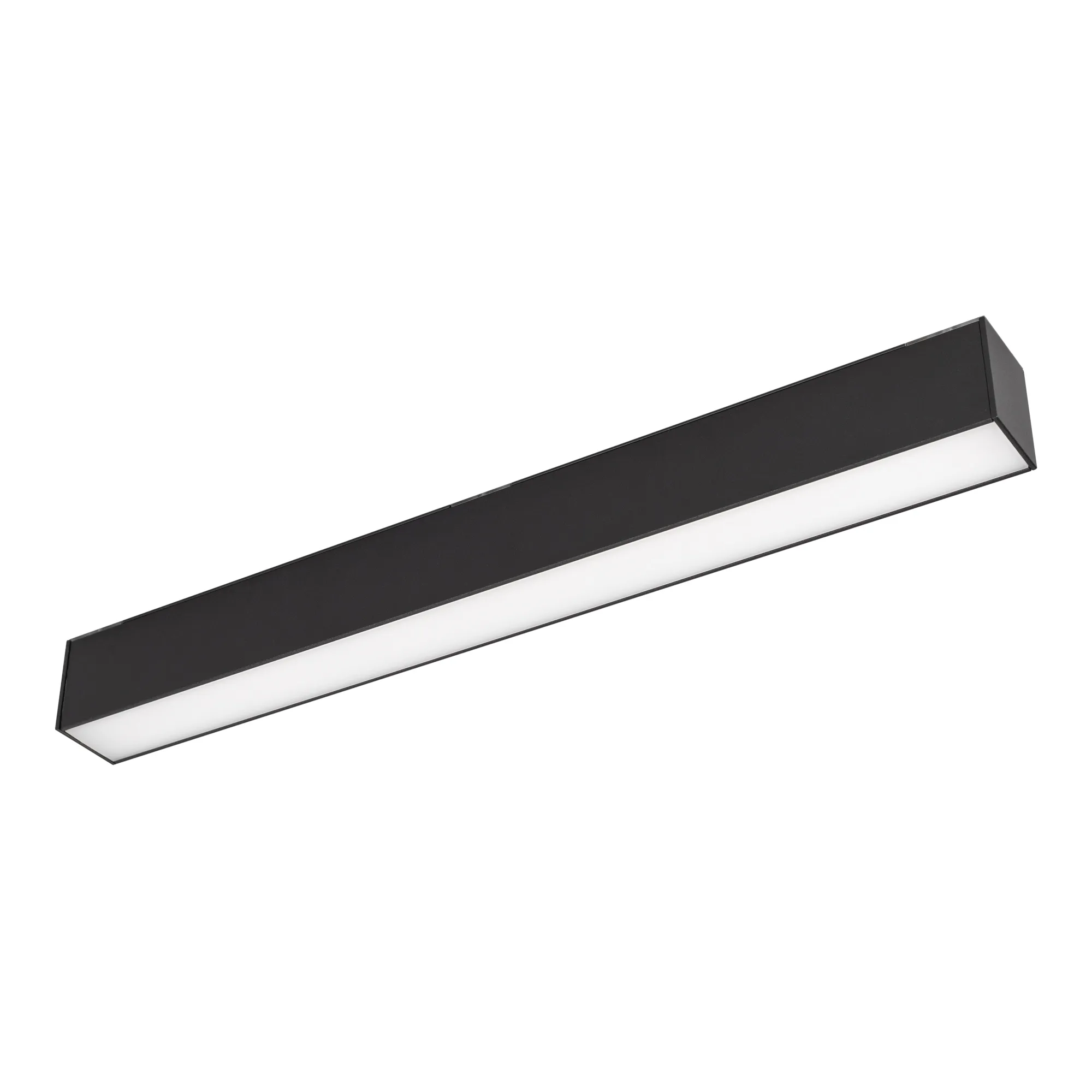 Светильник для магнитных треков шириной 45мм, 12Вт. Цвет свечения ТЕПЛЫЙ 3000K, световой поток 1200лм, угол 100°, CRI>90. Корпус прямоугольный, металл, цвет черный, IP20. Размеры LxWxH 404x35x43мм. Входное напряжение DC24V, мощность 12Вт. Драйвер DС24V/AC230V поставляется отдельно. Диммируется только с 026407(1), 027633.