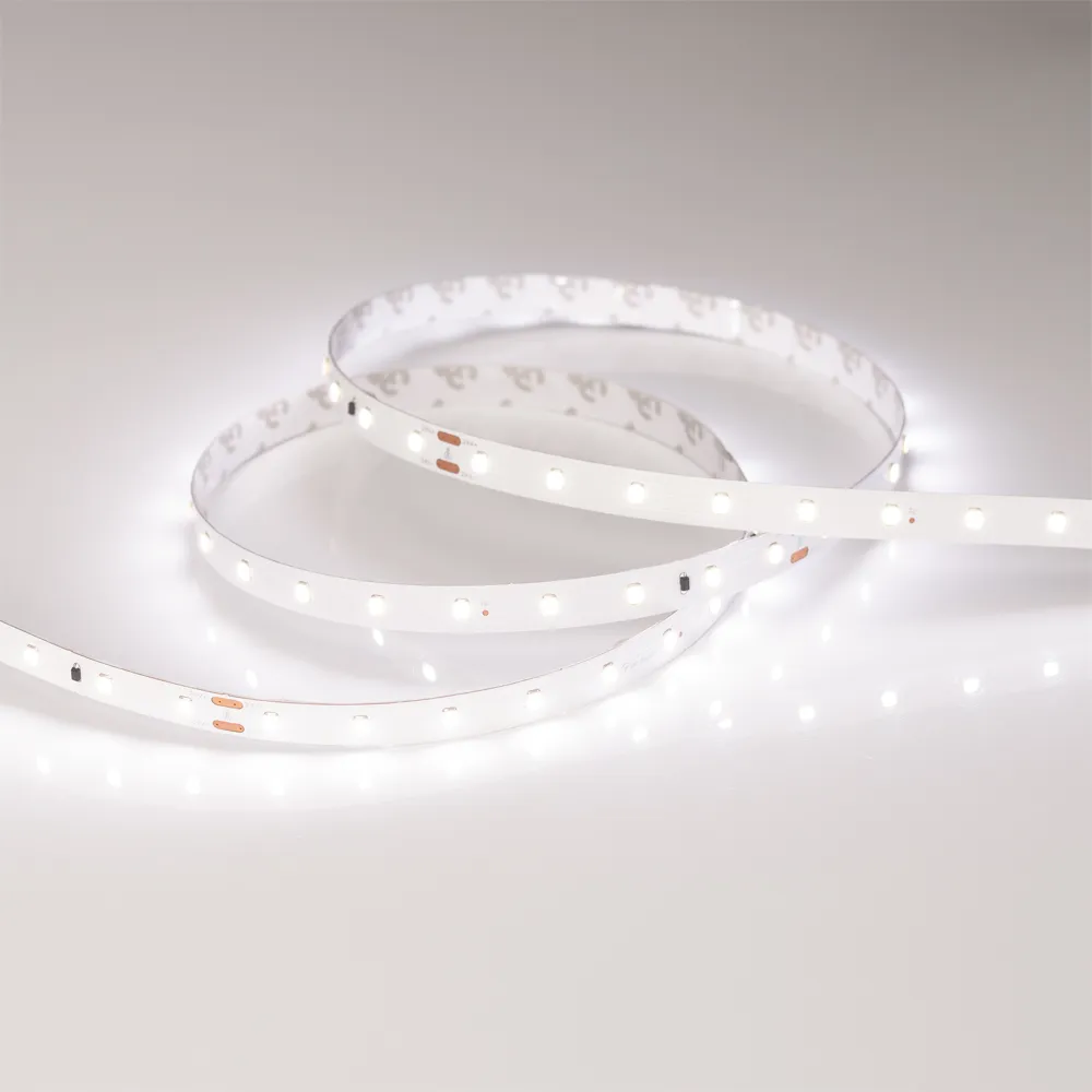 Гибкая стабилизированная лента LUX, подключение 30м в одну линию, светодиоды smd 2835, 60шт/м (1800шт на 30м), белая плата 10мм, скотч 3М. Цвет ДНЕВНОЙ 3800-4200K. Питание 24V, мощность 4.6 Вт/м (138 Вт на 30м), угол 120°, цветопередача CRI>85. Размеры 30000х10x1.6мм. Мин.отрезок 166.67мм, 10 шт светодиодов. Пакет 30м. Цена за 1м.
