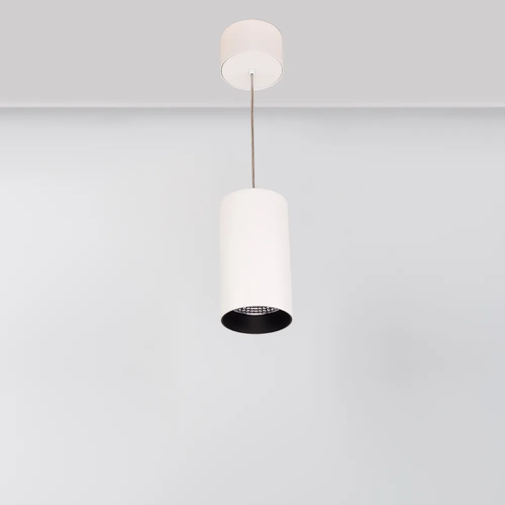 Подвесной светильник 15Вт, белый круглый корпус, черная вставка, металл.