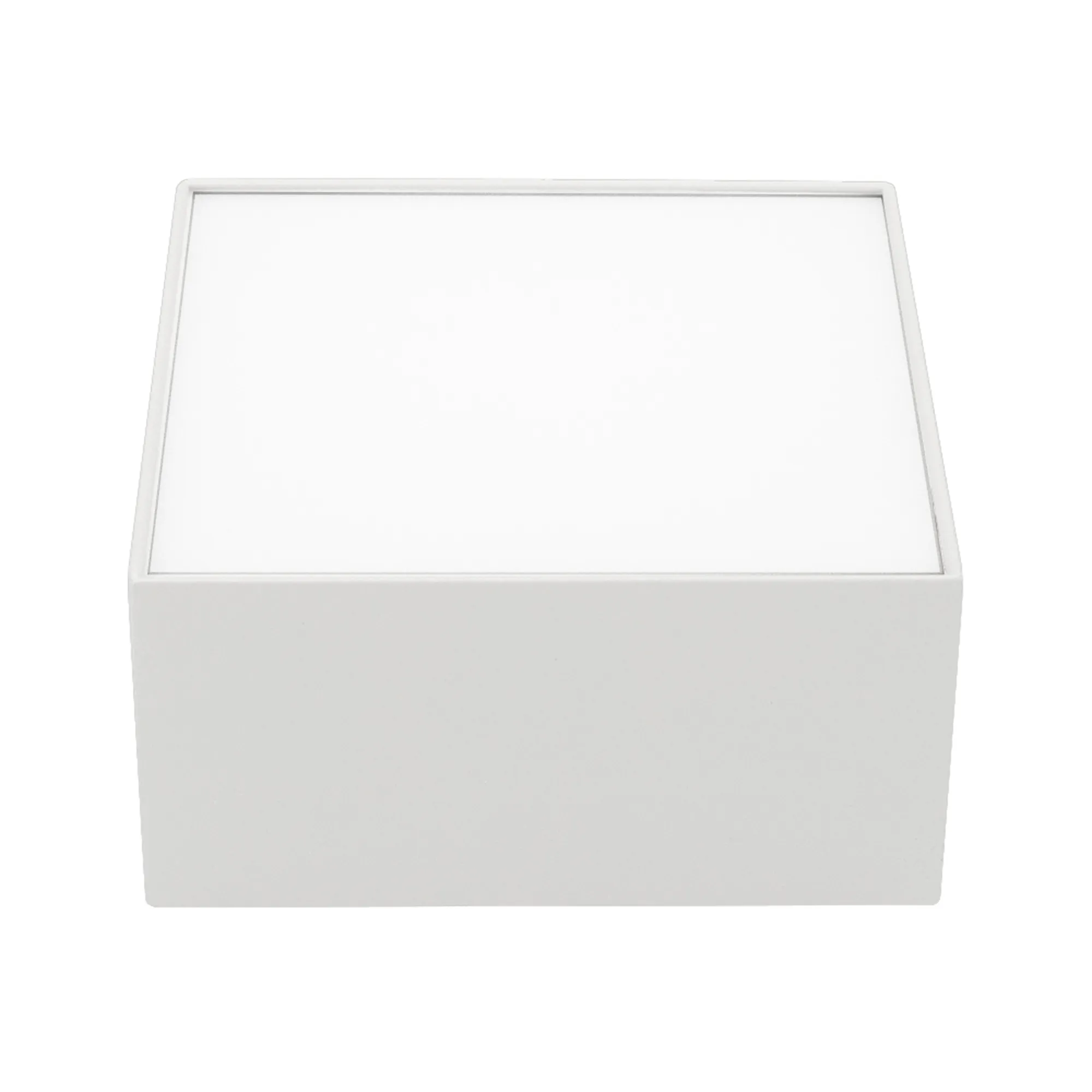 Накладной светильник 12 Вт, белый RAL 9002 квадратный корпус. Цвет ТЕПЛЫЙ БЕЛЫЙ 3000 K, св.поток 645лм, CRI(Ra)>80, угол 120°. Размер (ДхШхВ) 120x120x55 мм. Питание AC 176-240 В, 12 Вт, драйвер встроенный (250мА, 25-40В).