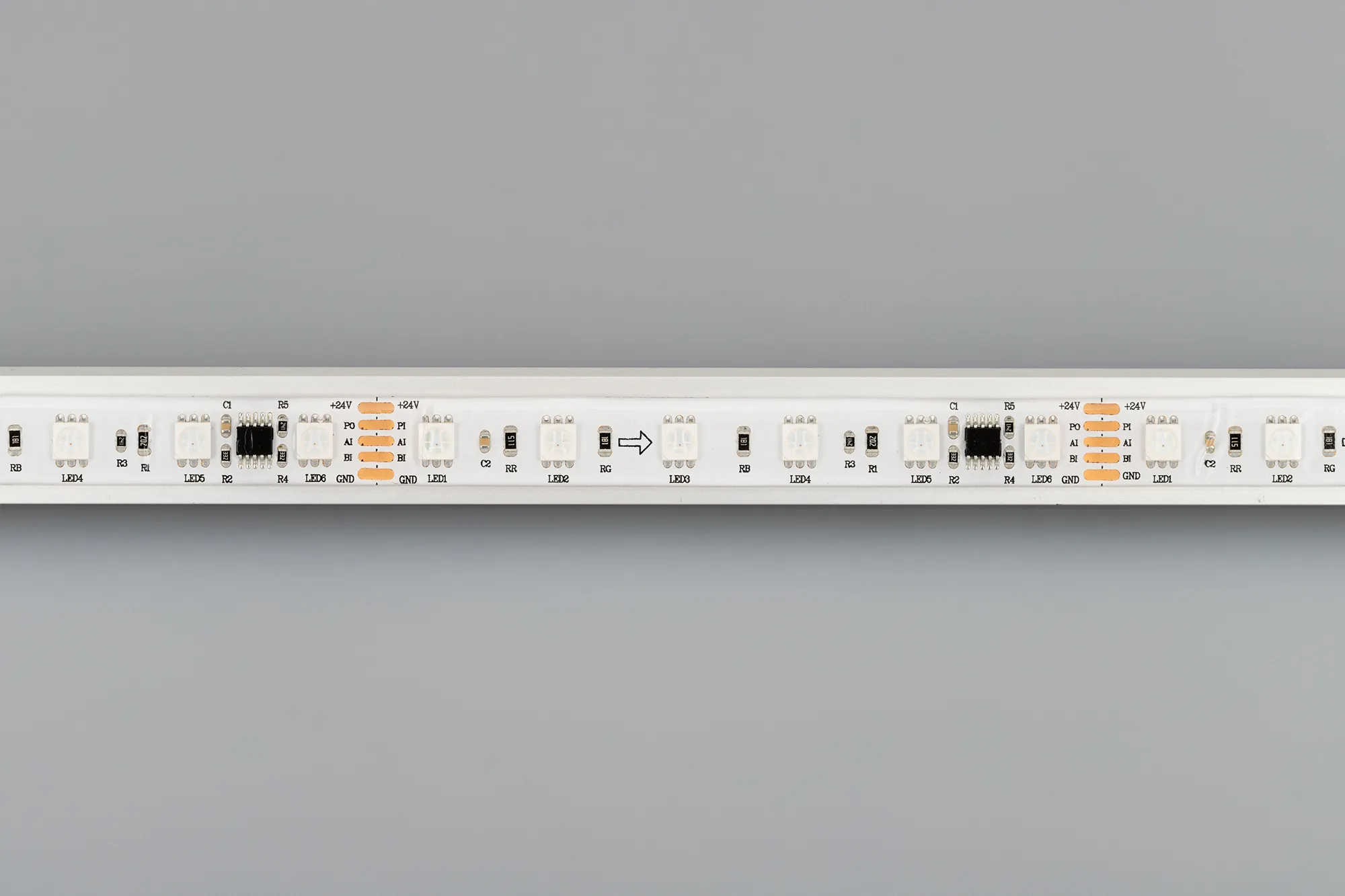 В магазине Мельковский Свет Вы можете купить "Лента светодиодная DMX-5000SE-5060-60 24V Cx6 RGB (12mm, 14.4W/m, IP65) (Arlight, Закрытый, IP65)"