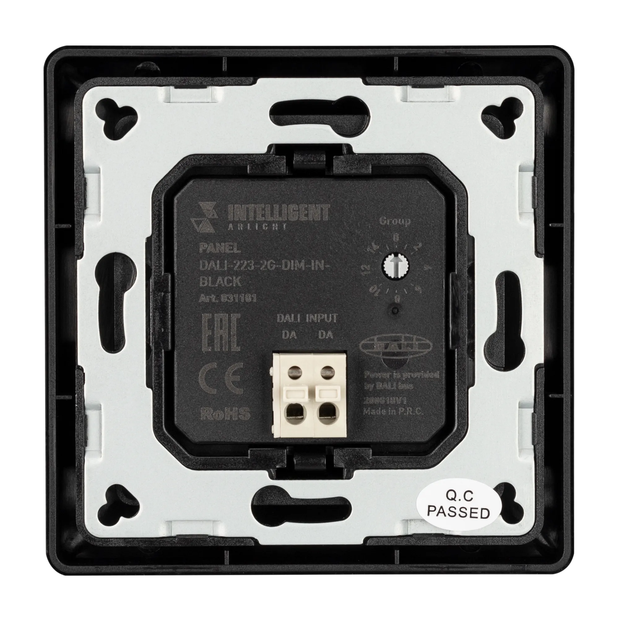 Встраиваемая кнопочная черная пластиковая панель для работы по протоколу DALI. Управление 2-мя группами. Установка номера первой группы выполняется переключателями на корпусе, функции каждой группы (ВКЛ / ВЫКЛ / ДИММИРОВАНИЕ). Питание от шины DALI (4 мА). Стандартная рамка входит в комплект поставки.