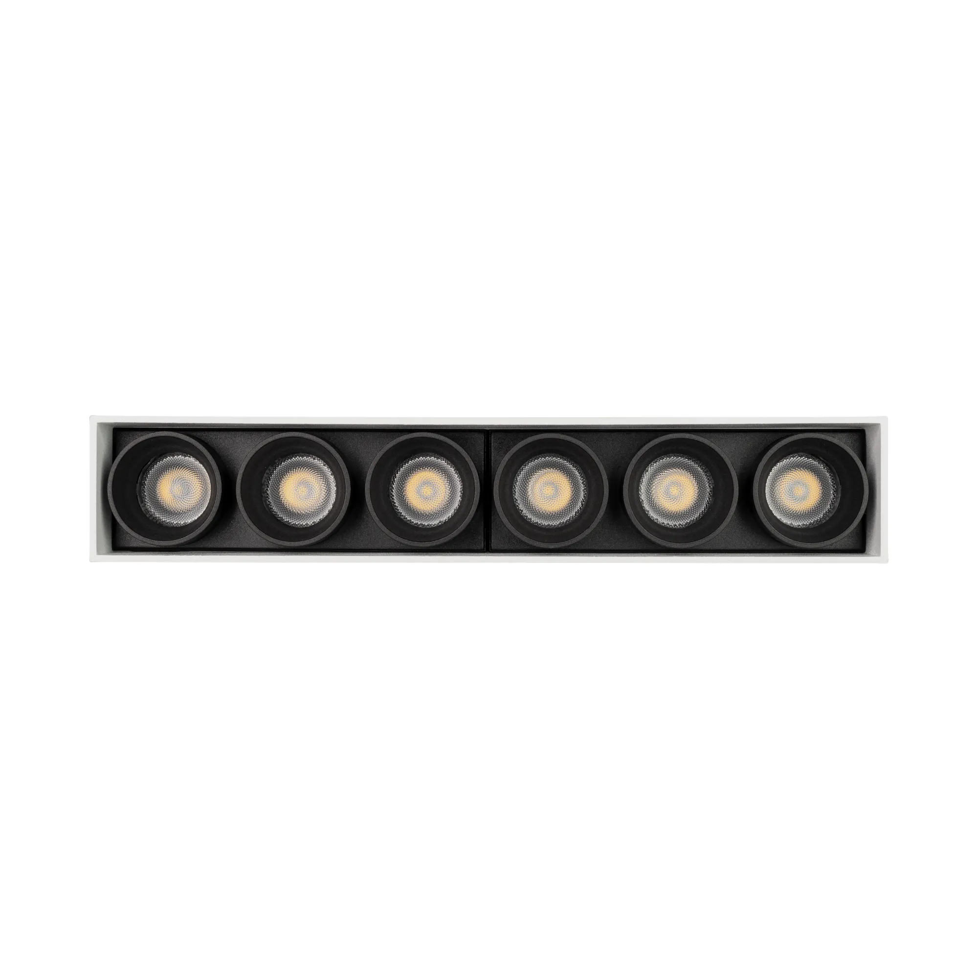 Накладной интерьерный светильник. Мощность 15 Вт, св. поток 958 лм, 68 лм/Вт, теплый 3000 K, CRI>98, угол 30°, напряжение питания 230 В. Белый квадратный корпус из алюминия, степень защиты IP20. Размер: длина 186 мм, ширина 35 мм, высота 88 мм. Монтаж накладной. Драйвер 13-21 В, 700 мА, пульсация <5%.
