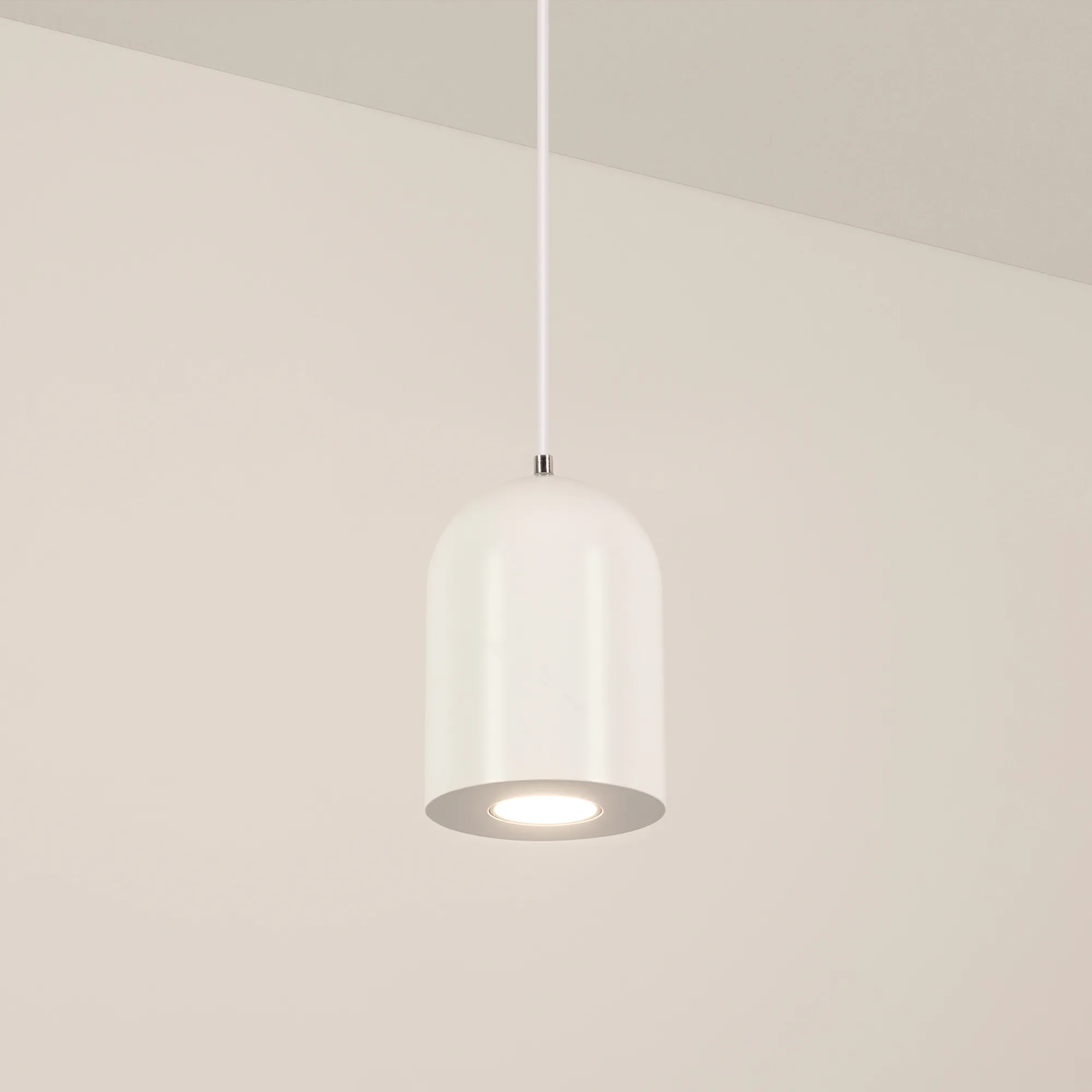 Подвесной светильник. Мощность 9 Вт, св. поток 650 лм, 73 лм/Вт, теплый 3000 K, CRI>80, угол 39°, напряжение питания 230 В. Белый корпус из алюминия, экран , степень защиты IP40. Размер: диаметр 71 мм, высота 100 мм. Монтаж подвесной, длина подвеса 1500мм, регулируемая. Габариты чаши Ø50x95 мм. Драйвер 28-42 В, 250 мА, пульсация <5%.