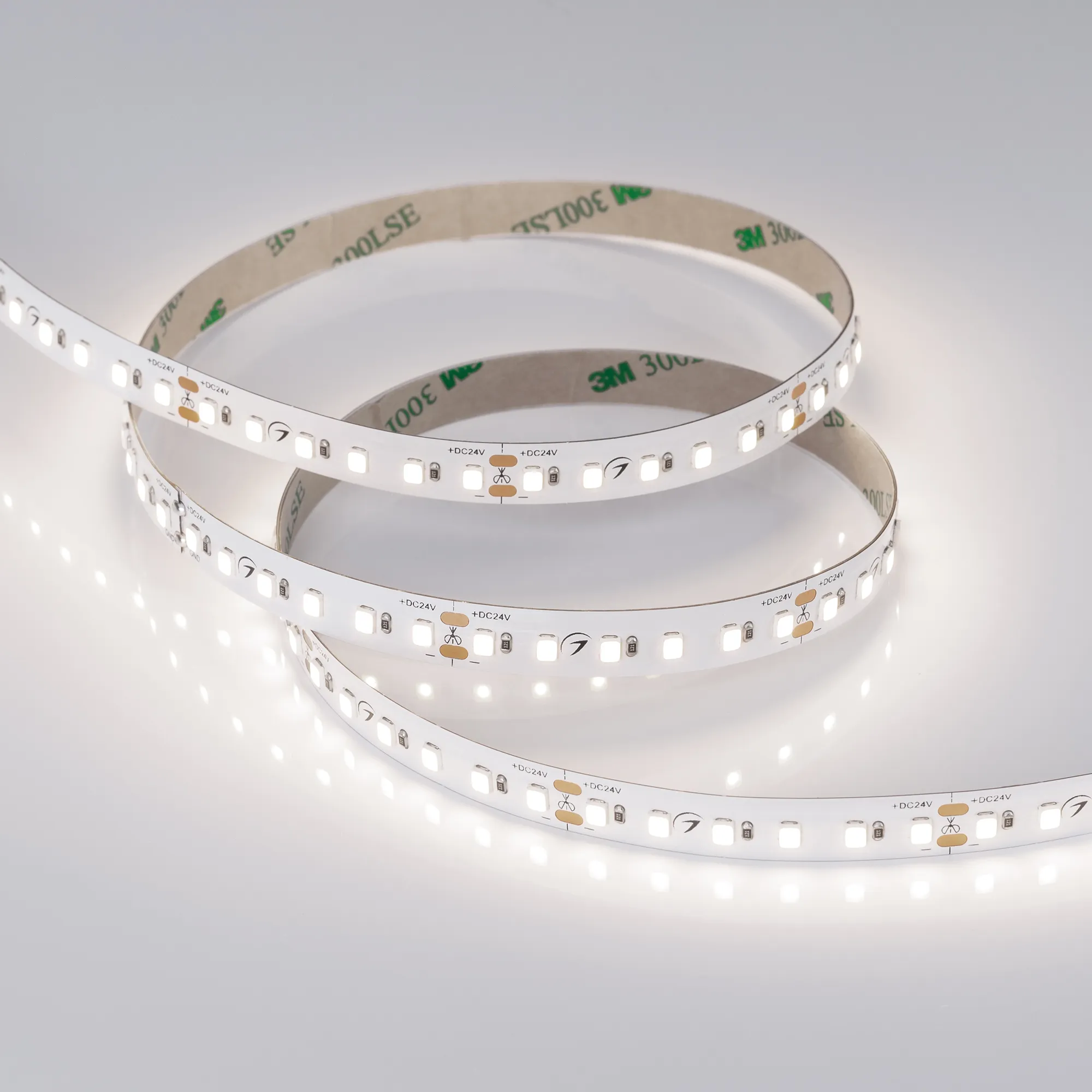 Светодиодная лента повышенной прочности TWIST серии A120. Светодиоды SMD 2835, 120 шт/м, белая плата шириной 10 мм, скотч 3M. Цвет ДНЕВНОЙ 4000K, индекс цветопередачи CRI>90, угол 120°. Питание 24 В, мощность 10 Вт/м (50 Вт на 5 м). Размеры 5000x10x1.5 мм. Мин. отрезок 50 мм, 6 светодиодов. Цена за 1 м.