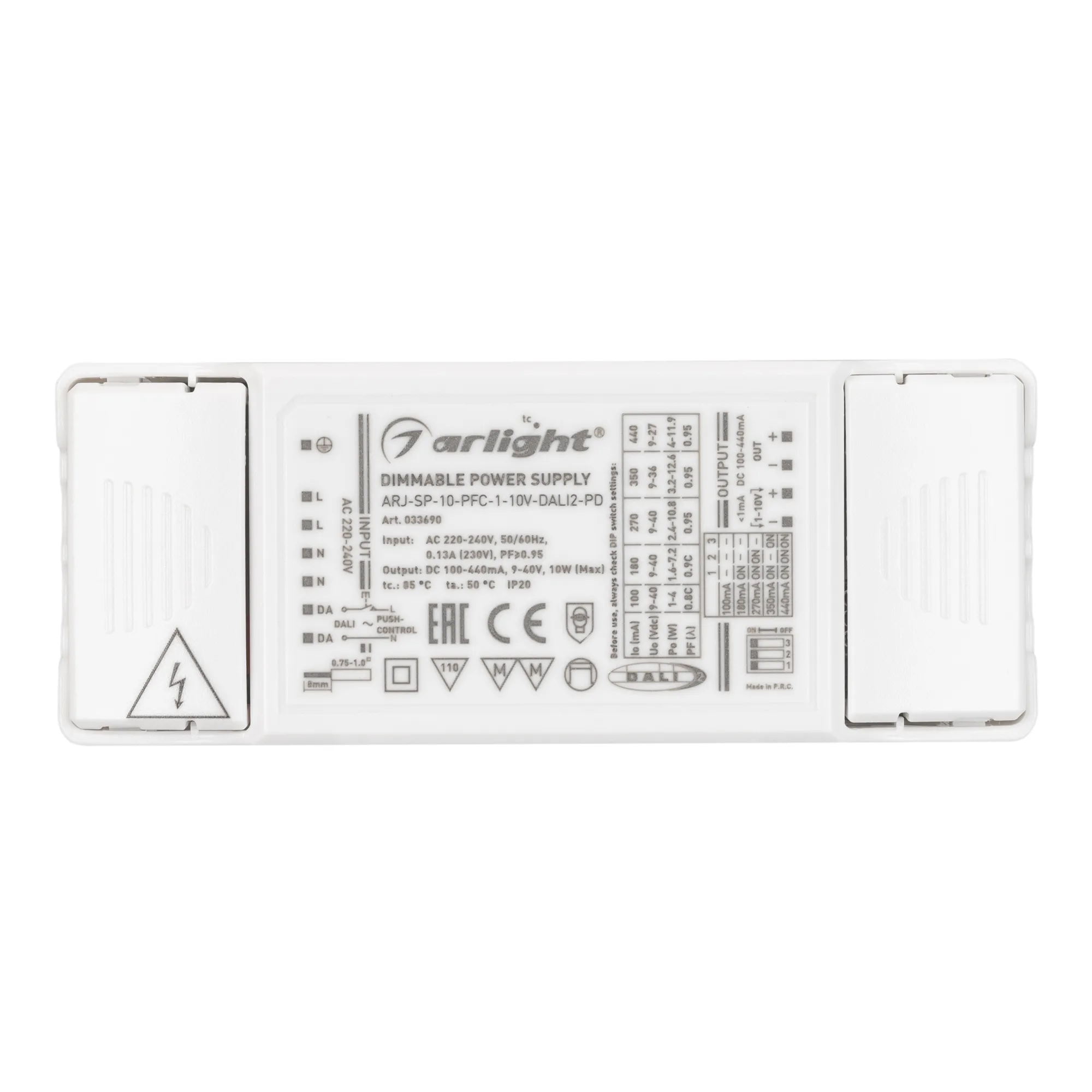 Блок питания ARJ-SP-10-PFC-1-10V-DALI2-PD (10W, 100-440mA) (Arlight, IP20 Пластик, 5 лет)