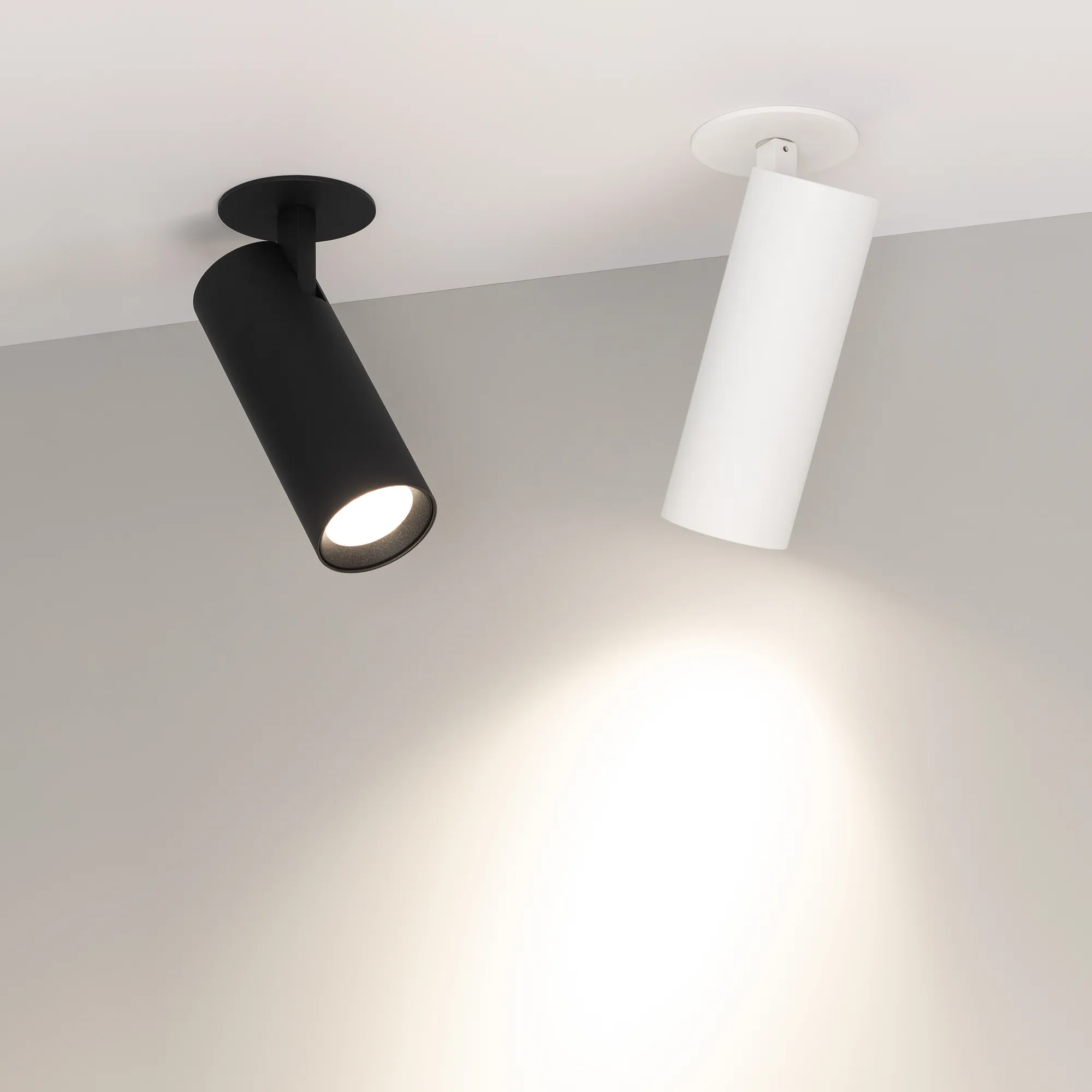 Встраиваемый поворотный светильник для потолка. Мощность 16 Вт, св. поток 1280 лм, 80 лм/Вт, дневной 4000 K, CRI>90, угол 25°, напряжение питания 230 В. Черный корпус из алюминия, линза PC, степень защиты IP20. Размер: диаметр 55 мм, длина 150 мм, высота 80 мм. Угол поворота 350°, угол наклона 90°. Монтаж встраиваемый, установочное отверстие диаметр 60 мм, глубина 30 мм. Драйвер 26-40 В, 400 мА, пульсация <5%.