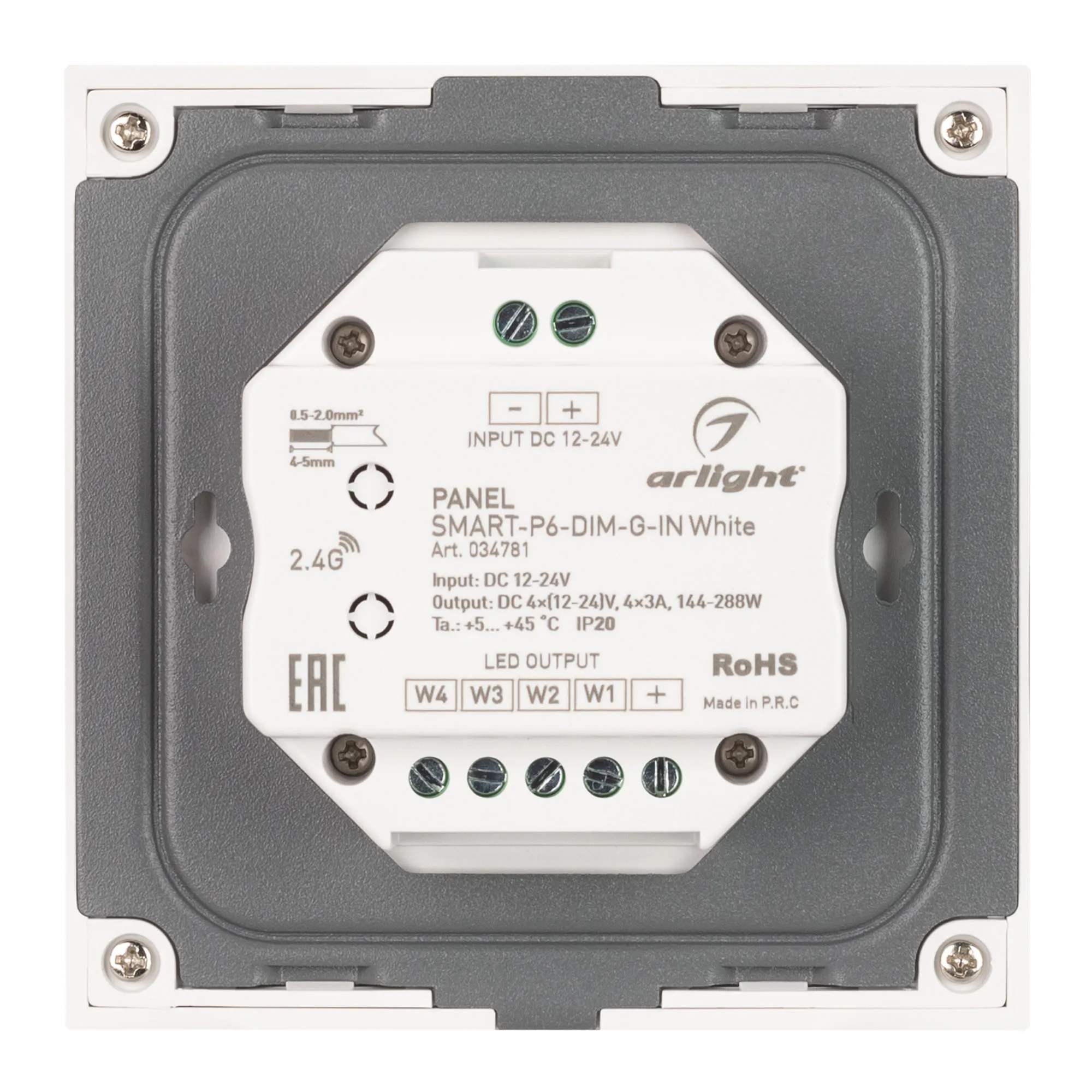 Панель SMART-P6-DIM-G-IN White (12-24V, 4x3A, Sens, 2.4G) (Arlight, IP20 Пластик, 5 лет)