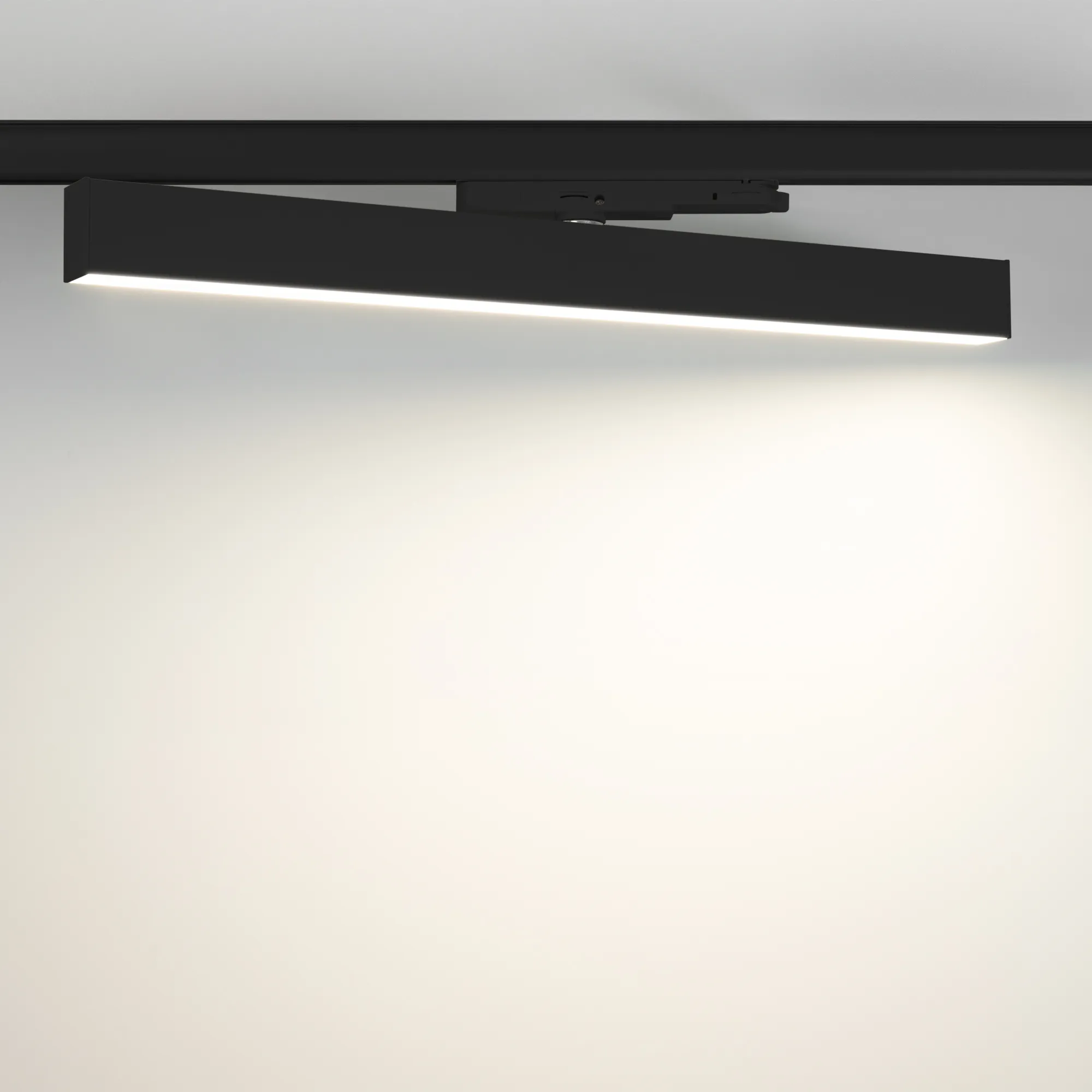 Светильник для треков/шин 4 провода. Мощность 25 Вт, св. поток 2078 лм, 83 лм/Вт, дневной 4000 K, CRI>90, угол 100°, напряжение питания 230 В. Черный корпус из алюминия, материал рассеивателя PC, степень защиты IP20. Размер: длина 605 мм, ширина 34 мм, высота 50 мм. Монтаж на трек 3-фазный. Драйвер 16-40 В, 700 мА, пульсация <1%.