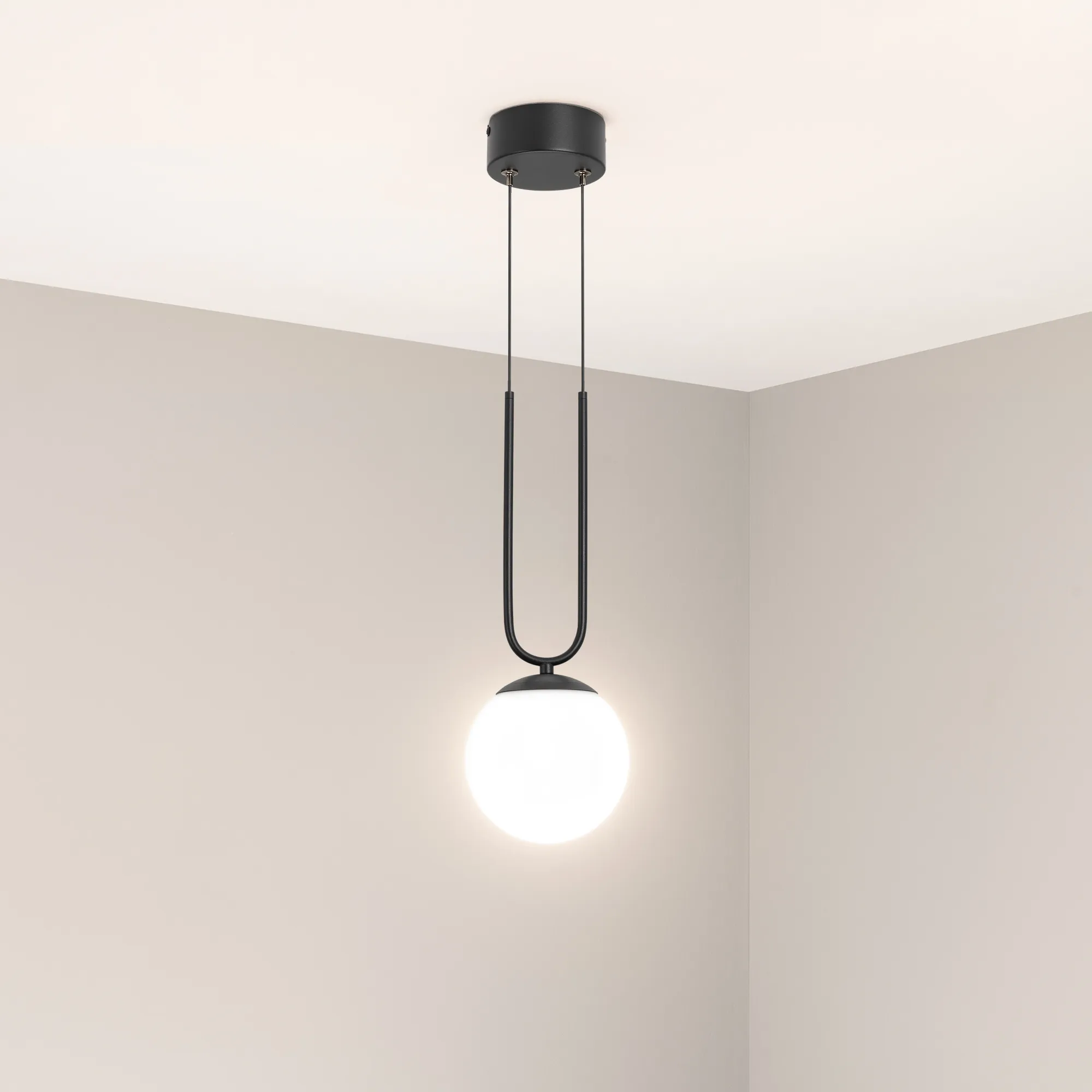 Подвесной светильник. Мощность 10 Вт, св. поток 710 лм, 71 лм/Вт, дневной 4000 K, CRI>90, угол 275°, напряжение питания 230 В. Черный круглый корпус из алюминия и стали, рассеиватель стекло, степень защиты IP20. Размер: диаметр 130 мм, высота ножки 220 мм, высота с плафоном 357 мм, размер чаши: диаметр 100 мм, высота 40 мм. Монтаж подвесной, длина подвеса 1140 мм. Драйвер 6-14 В, 600 мА, пульсация <1%.