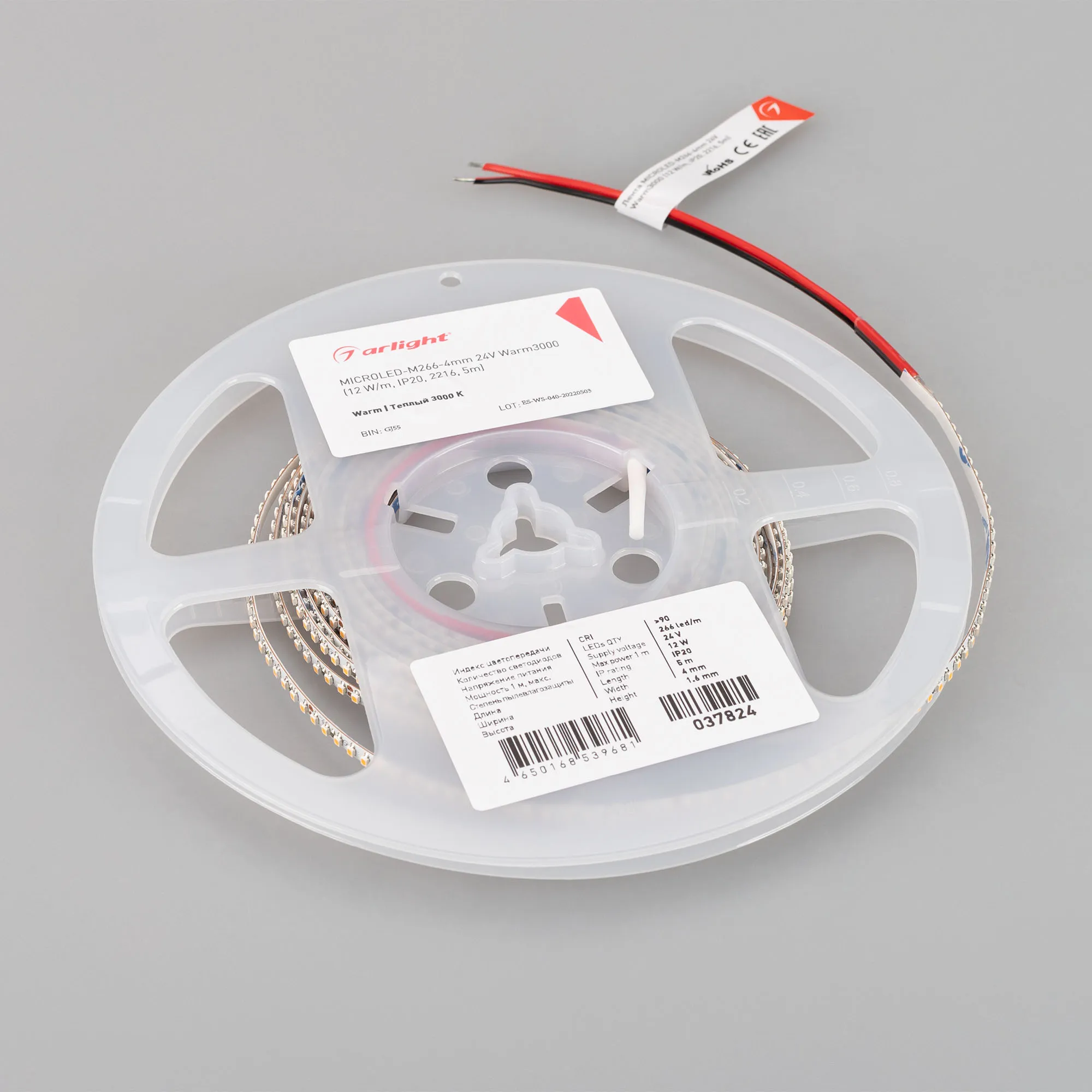 Светодиодная узкая лента MICROLED серии M266 . Светодиоды SMD 2216, 266 шт/м, белая плата шириной 4 мм, скотч 3M. Цвет ТЕПЛЫЙ 3000K, индекс цветопередачи CRI>90, угол 120°. Питание 24 В, мощность 12 Вт/м (60 Вт на 5 м). Размеры 5000х4х1.6 мм. Мин. отрезок 26.4 мм, 7 светодиодов. Цена за 1 м. Обязательна установка на профиль.