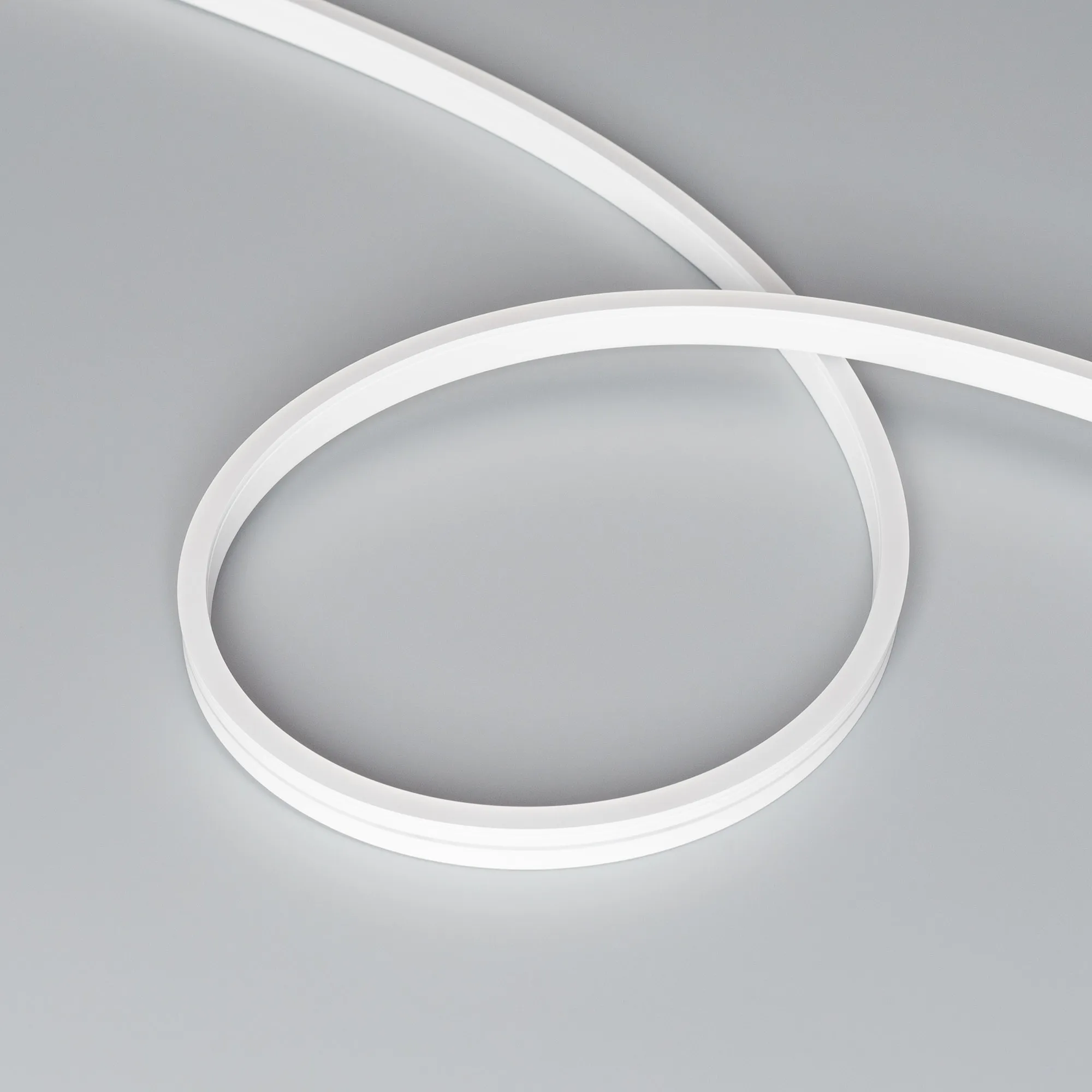 Гибкая герметичная лента (неон серии MOONLIGHT), сечение 6×12 мм. Светодиоды SMD 2835 120 шт/м. Цвет свечения БЕЛЫЙ (6000 К), индекс цветопередачи CRI>90, световой поток 280 лм/м, угол излучения 112°. Мощность 9.6 Вт/м, питание 24 В. Класс пылевлагозащиты IP65. Размеры 5000×6×12 мм. Мин. отрезок 50 мм. Горизонтальный изгиб SIDE, минимальный радиус изгиба 30 мм. Вывод кабеля с двух сторон. Катушка 5 м. Цена за 1 м. Гарантия 3 года.