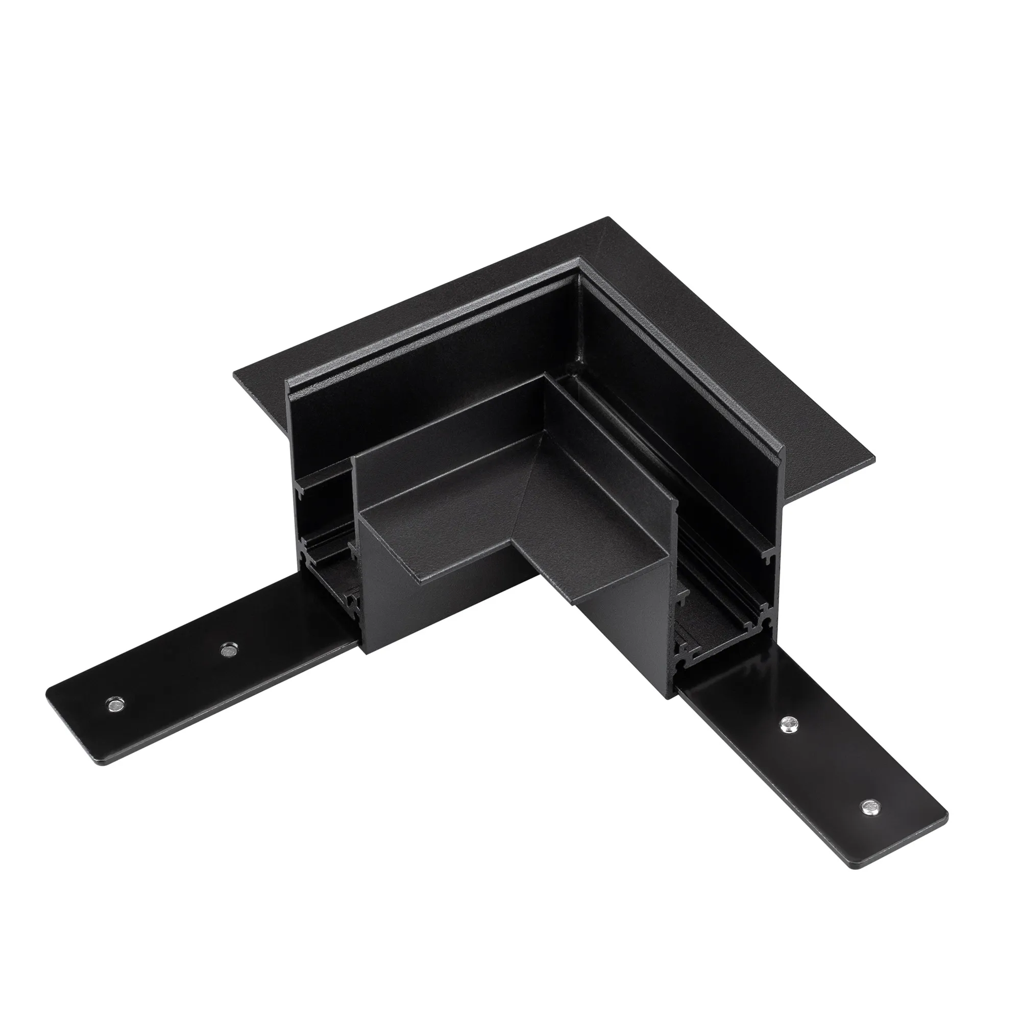 Угловой коннектор для встраиваемого трека MAG-ORIENT. Материал алюминий, цвет черный. Размеры 90x90x70x53мм. Аксессуары для электрического соединения с треком приобретаются отдельно. В комплекте идут механические соединители. Соединение в одной плоскости.