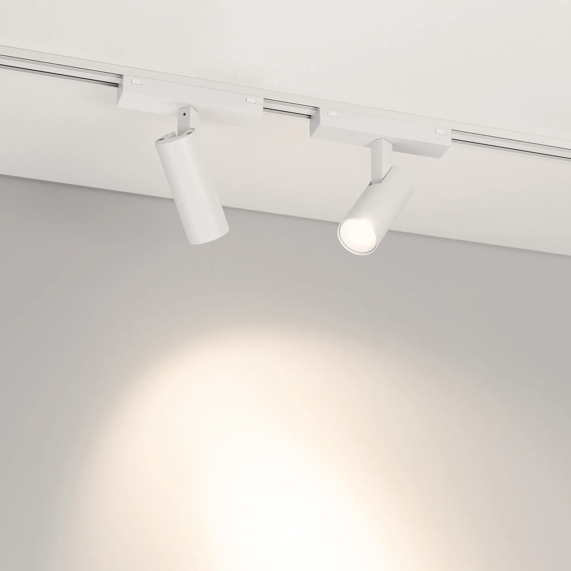 Светильник для магнитных треков MAG-VIBE. Мощность 8 Вт, св. поток 620 лм, 77 лм/Вт, теплый 3000 K, CRI>90, угол 24°, напряжение питания 48 В. Белый фигурный корпус из алюминия, экран PMMA, степень защиты IP20.Размеры LxWxH 122x35x81 мм. Длина светоизлучающего модуля 85мм. Монтаж на трек MAG-VIBE. Пульсация <1%.