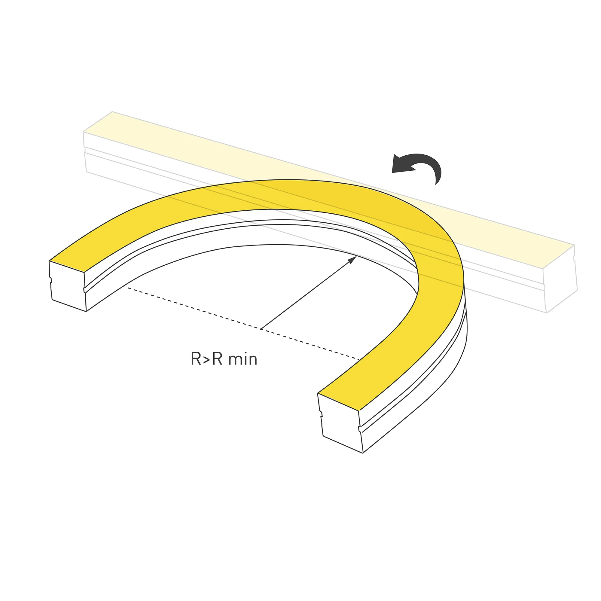 Гибкая герметичная лента (неон серии MOONLIGHT), сечение 20×20 мм. Светодиоды CSP 280 шт/м. Цвет свечения ТЕПЛЫЙ (2300К), индекс цветопередачи CRI>90, световой поток 370 лм/м, угол излучения 114°. Мощность 10 Вт/м, питание 24 В. Класс пылевлагозащиты IP67. Размеры 15000×20×20 мм. Мин. отрезок 50 мм. Горизонтальный изгиб SIDE, минимальный радиус изгиба 60 мм. Катушка 15 м. Цена за 1 м. Гарантия 5 лет.