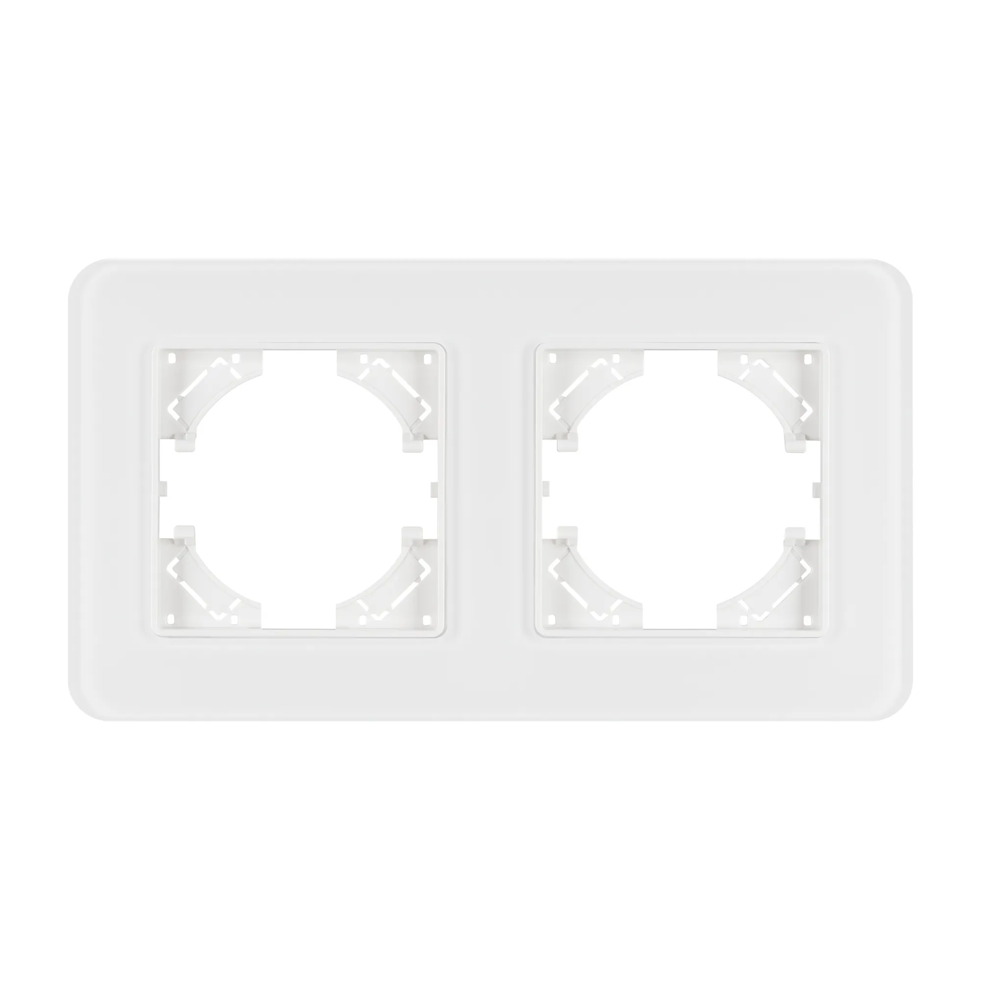 Рамка стеклянная на 2 поста, под встраиваемый механизм. Цвет - белый с Soft-Touch покрытием. Среднего уровня герметичности IP20. Ориентация монтажа - горизонтальная (основным ориентиром служат посадочные выступы для накладки механизма).