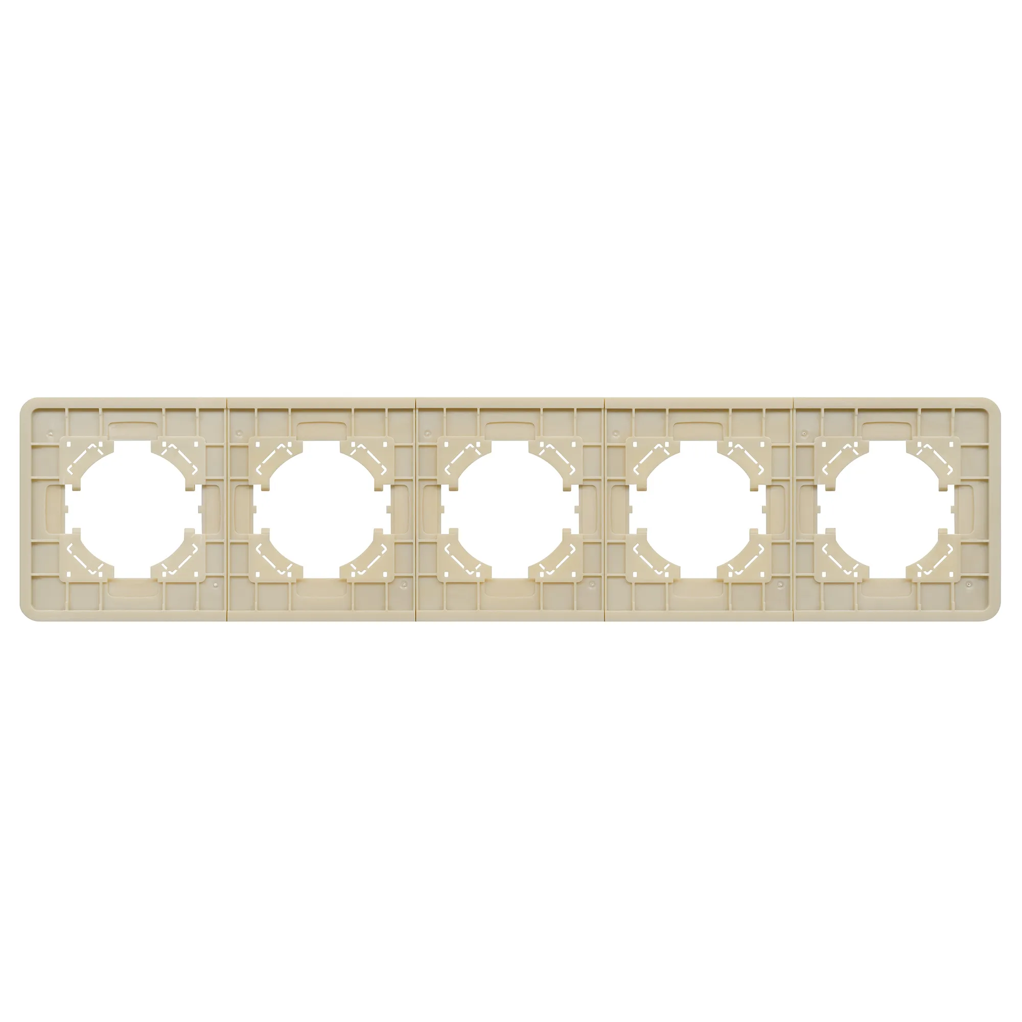 Рамка стеклянная на 5 постов, под встраиваемый механизм. Цвет - золотой. Среднего уровня герметичности IP20. Ориентация монтажа - горизонтальная (основным ориентиром служат посадочные выступы для накладки механизма).