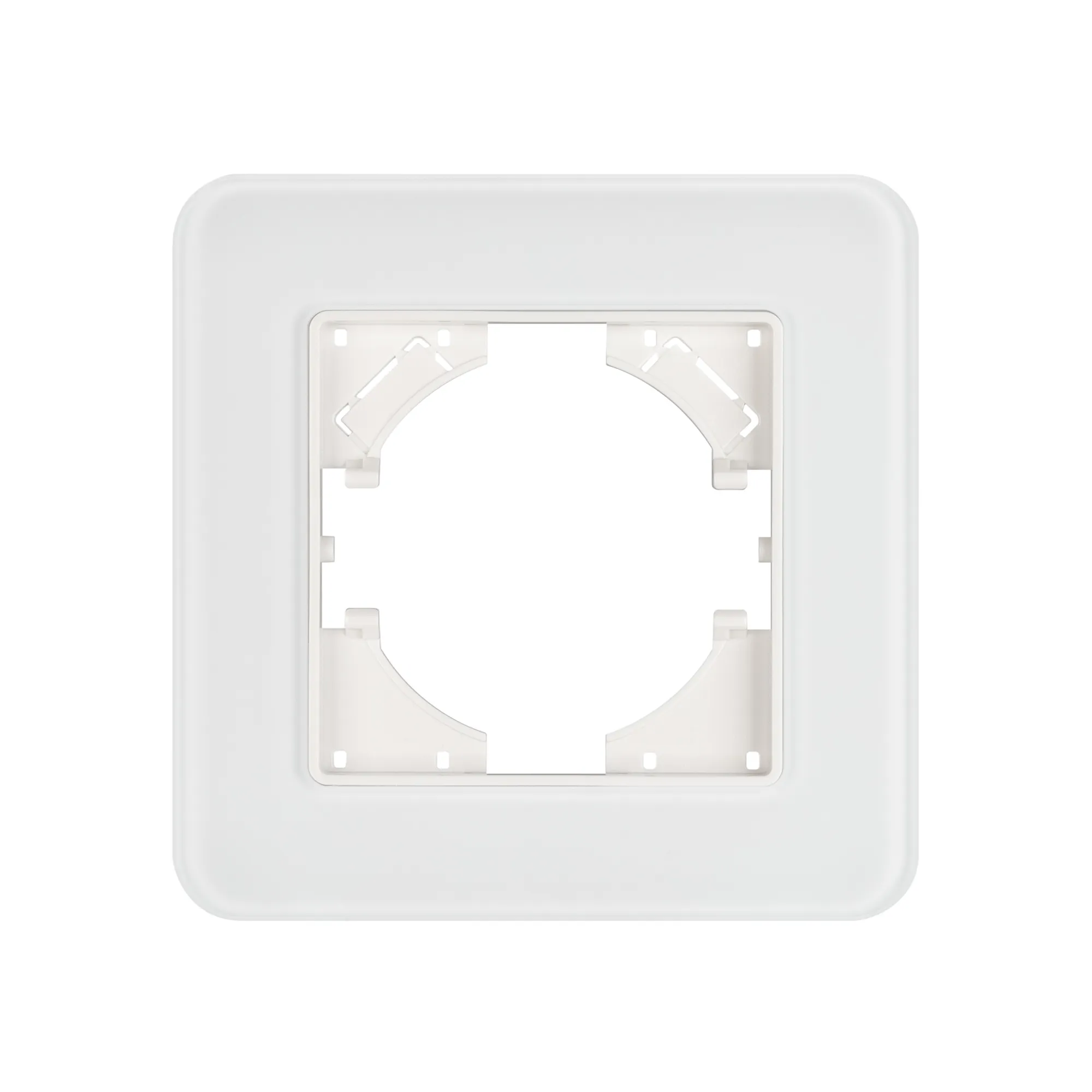 Рамка стеклянная на 1 пост, под встраиваемый механизм. Цвет - белый. Среднего уровня герметичности IP20. Ориентация монтажа - горизонтальная (основным ориентиром служат посадочные выступы для накладки механизма).