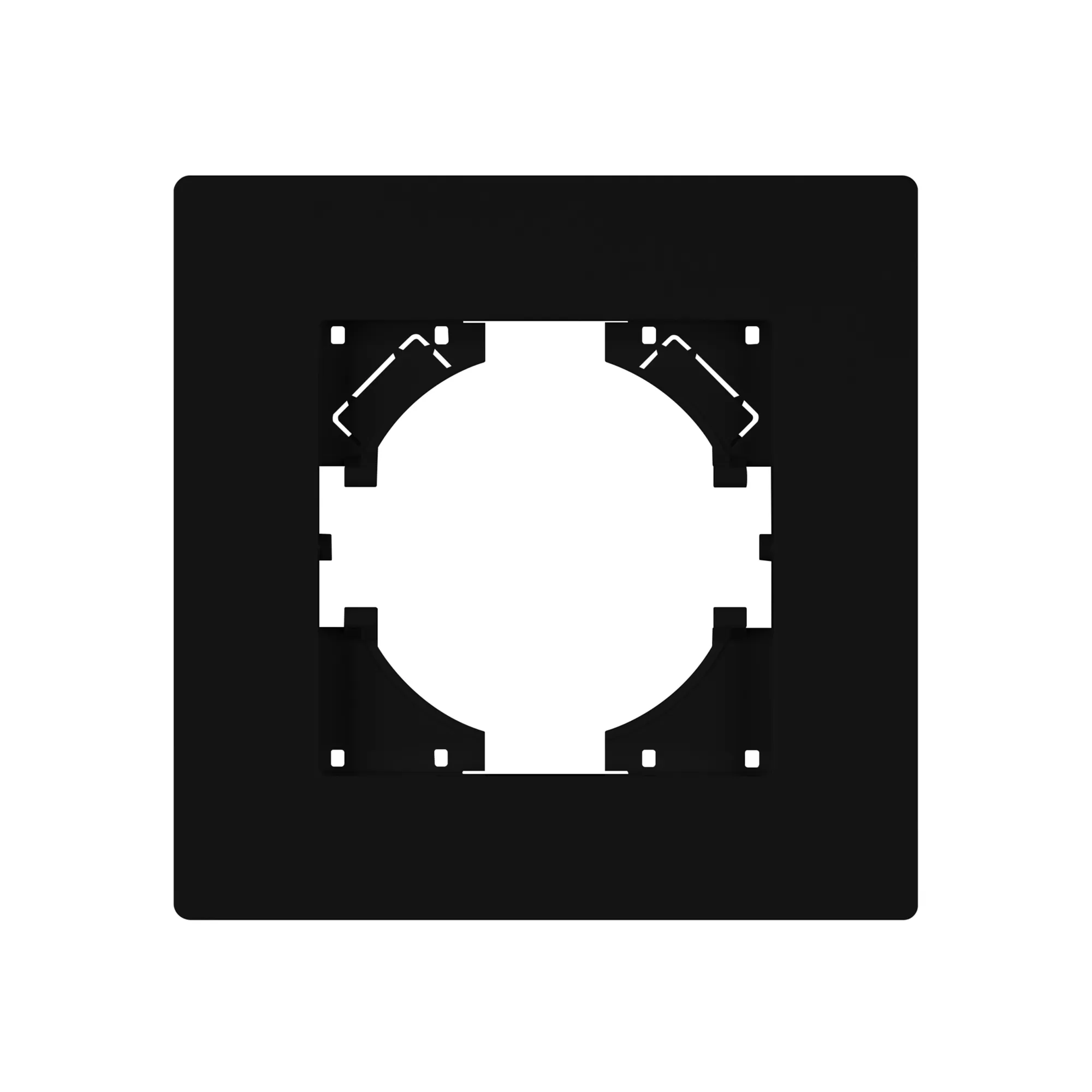 Рамка пластиковая на 1 пост, под встраиваемый механизм. Цвет - черный. Среднего уровня герметичности IP20. Ориентация монтажа - горизонтальная (основным ориентиром служат посадочные выступы для накладки механизма).