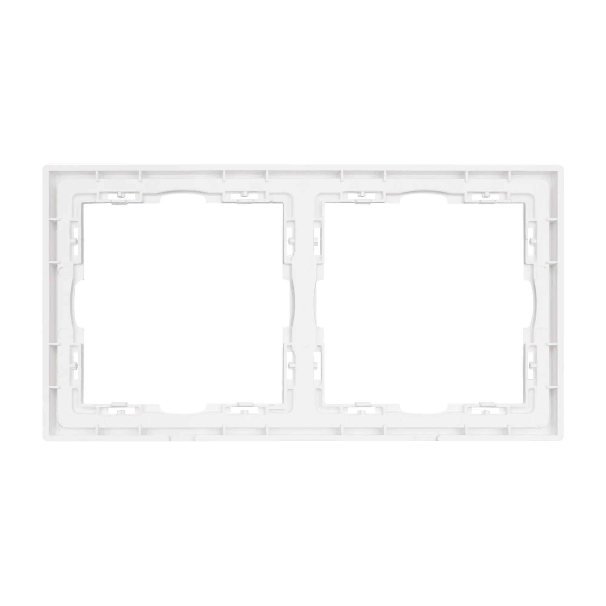 Рамка пластиковая на 2 поста, под встраиваемый механизм. Цвет - белый, с Soft-Touch покрытием. Среднего уровня герметичности IP20. Ориентация монтажа горизонтальная.