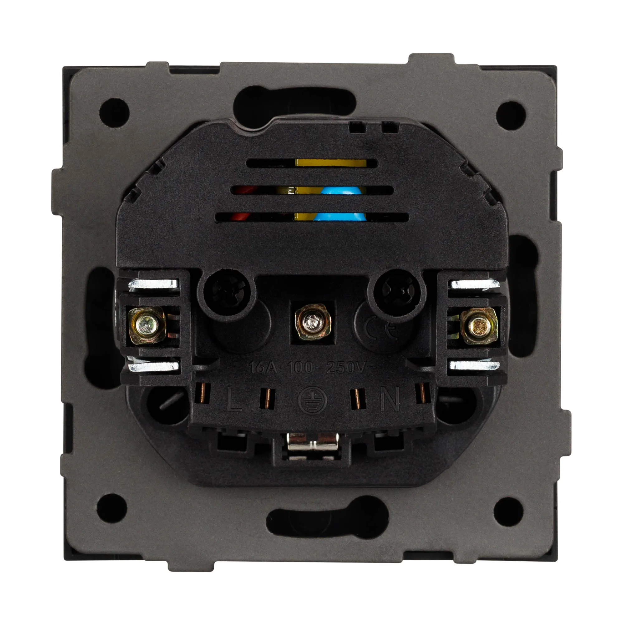 Механизм розетки с заземлением 1 пост 2 USB Type A+C порта. Цвет - серый, с Soft-Touch покрытием. Без фронтальной рамки. Уровень пылевлагозащиты IP20. Розетка устанавливается в стандартный подрозетник круглого сечения диаметром 60мм.