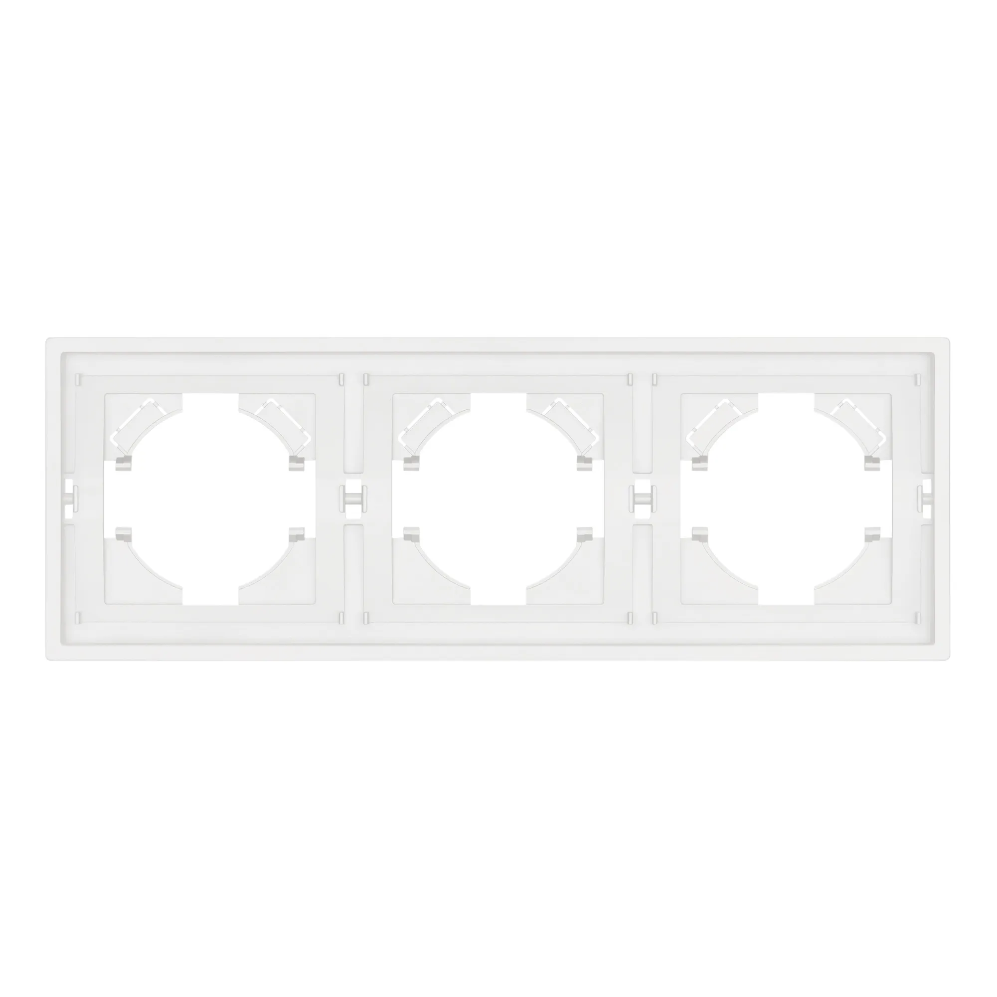 Рамка пластиковая на 3 поста, под встраиваемый механизм. Цвет - белый, с Soft-Touch покрытием. Среднего уровня герметичности IP20. Ориентация монтажа горизонтальная.