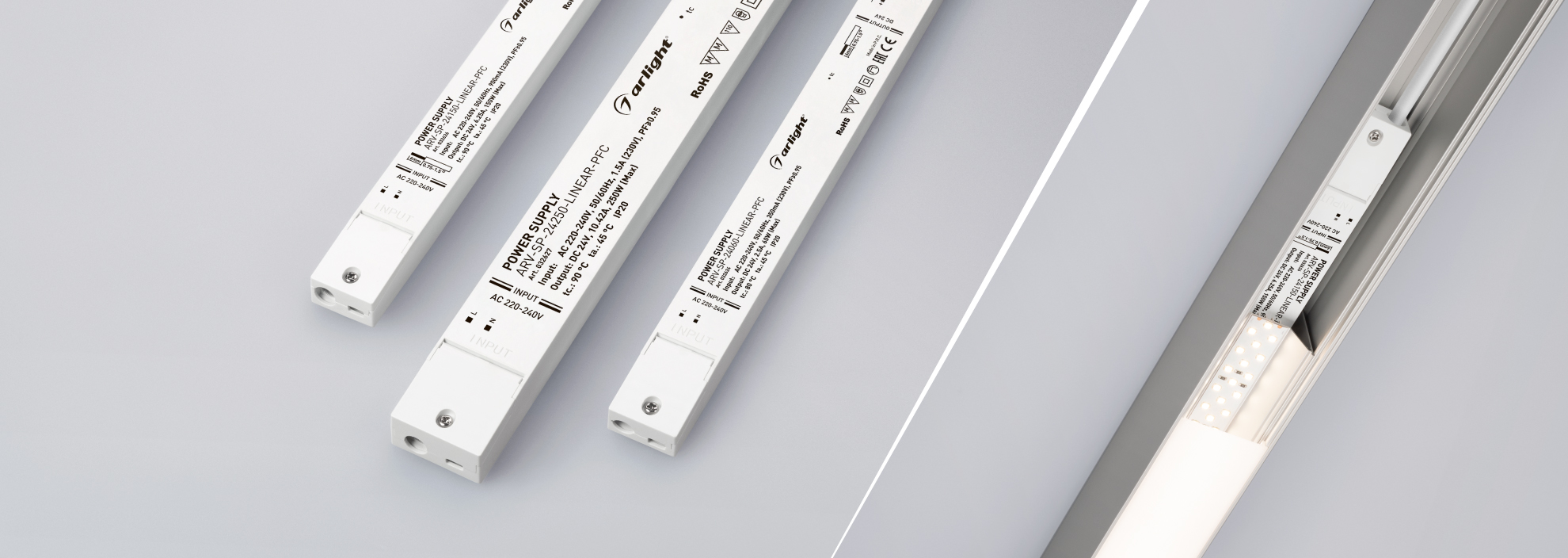 Тонкие блоки питания серии ARV-SP-LINEAR идеальны для размещения в профилях и других ограниченных пространствах, например, при производстве рекламных вывесок, лайтбоксов и компактных световых конструкций.