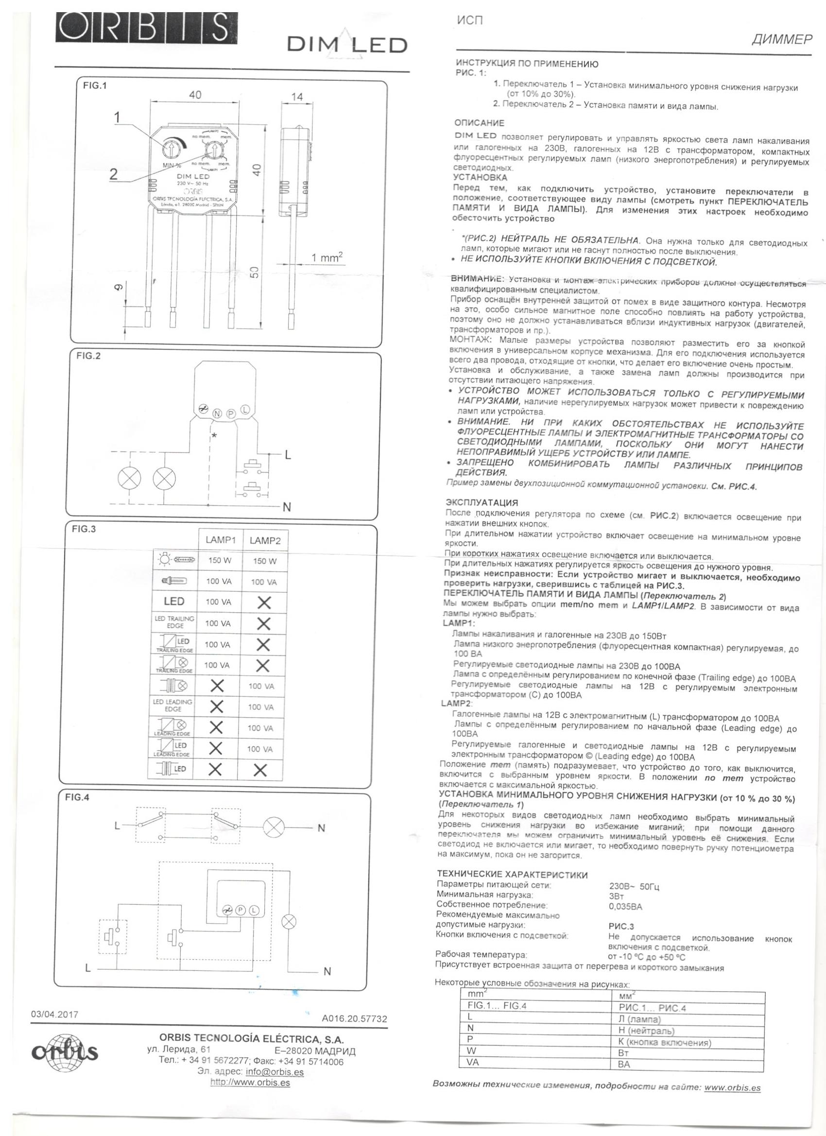 • Энергосберегающие: 100 VA • Галогенные: 12 Va.c. 100 VA • Галогенные: 230 Va.c. 150 W • LED: 100 VA |